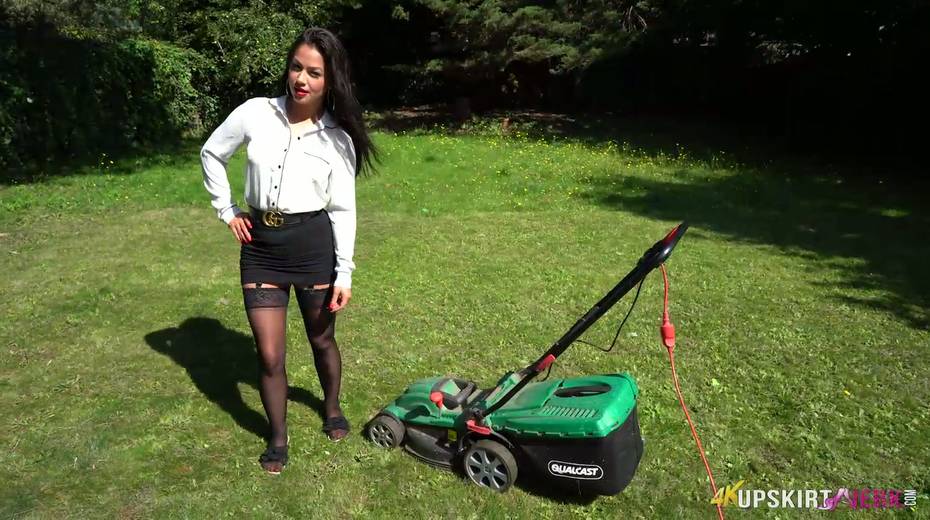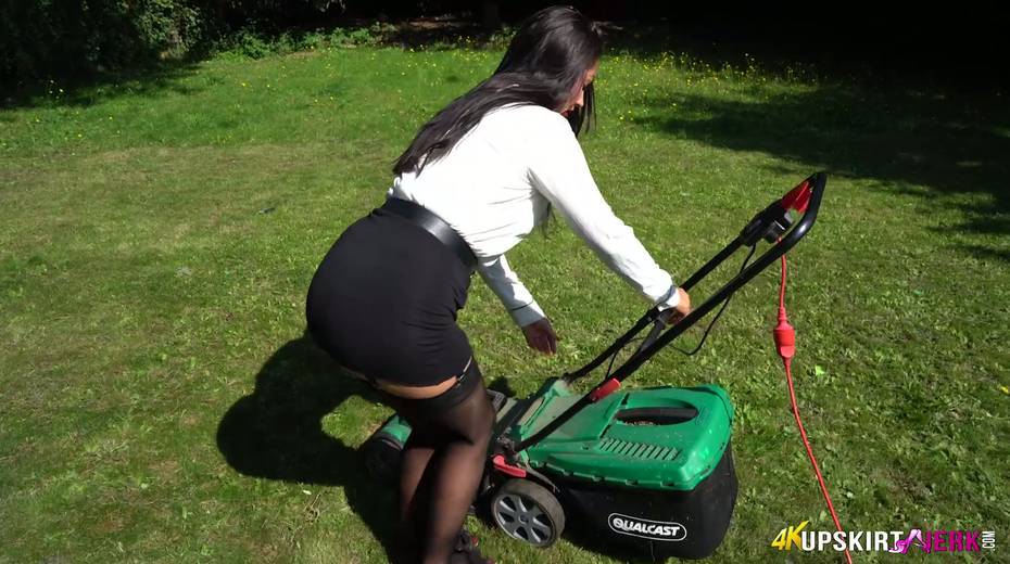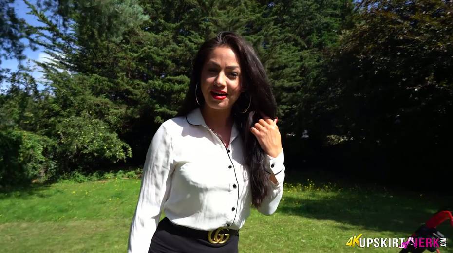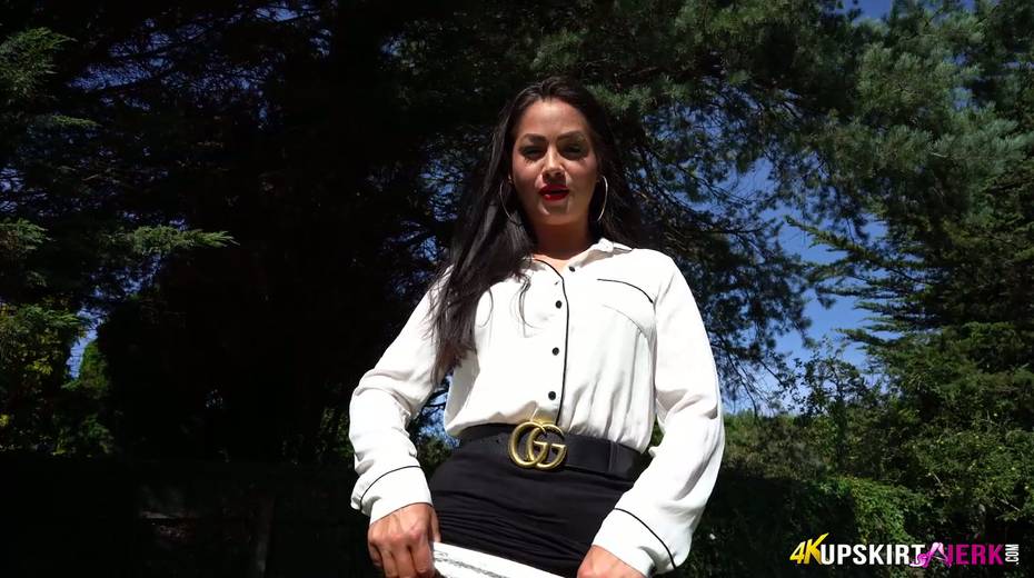 Bootyful chick shows off her wet pussy upskirt pulling panties aside