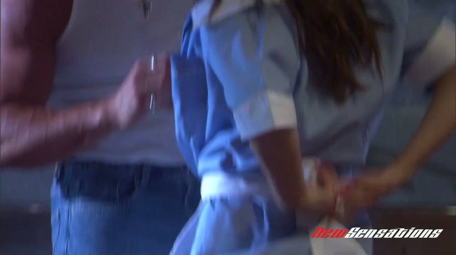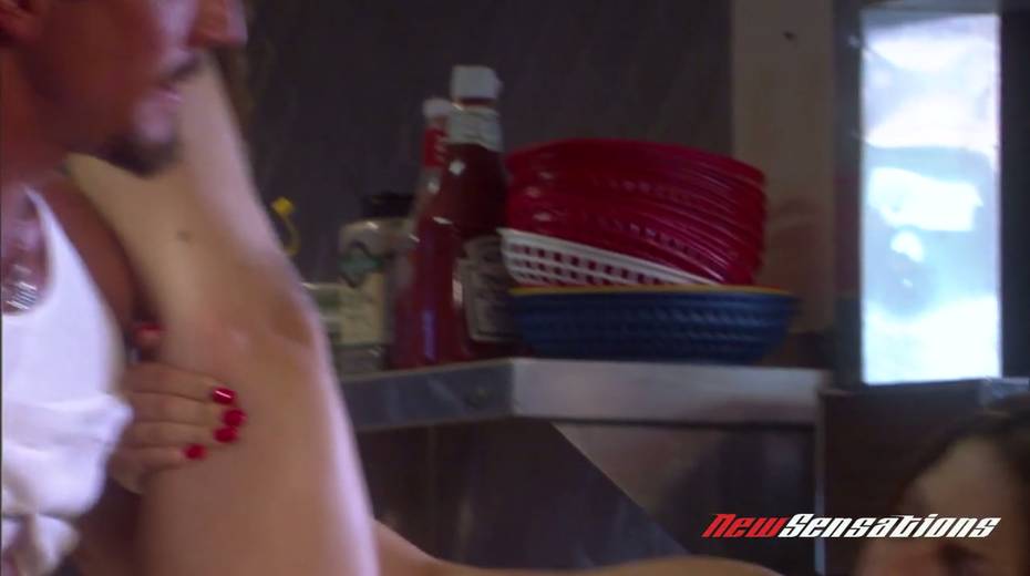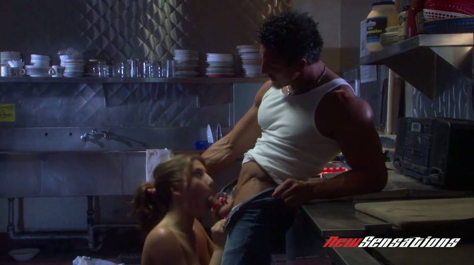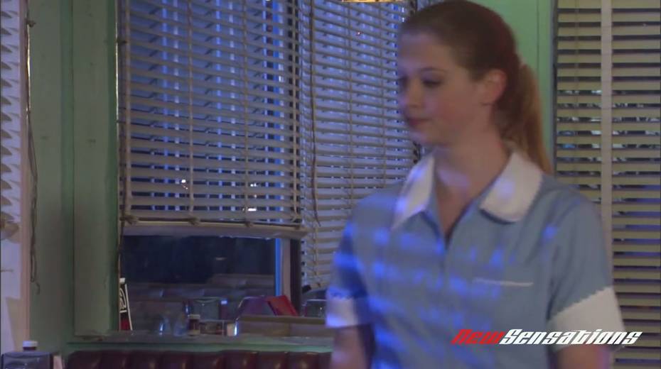 Alpha male fucks wet pussy and deep throat of naughty waitress Karina Kay