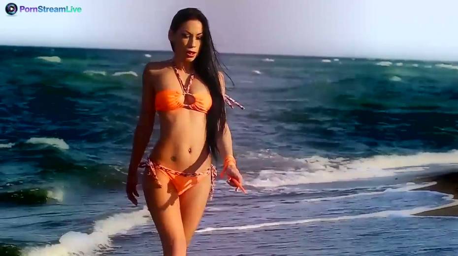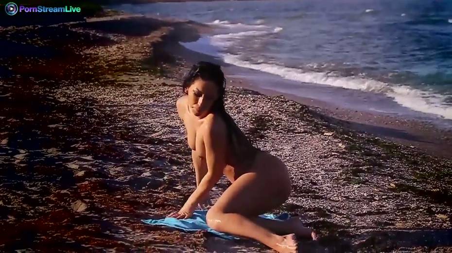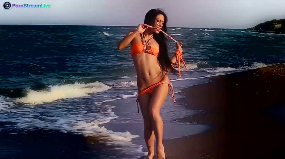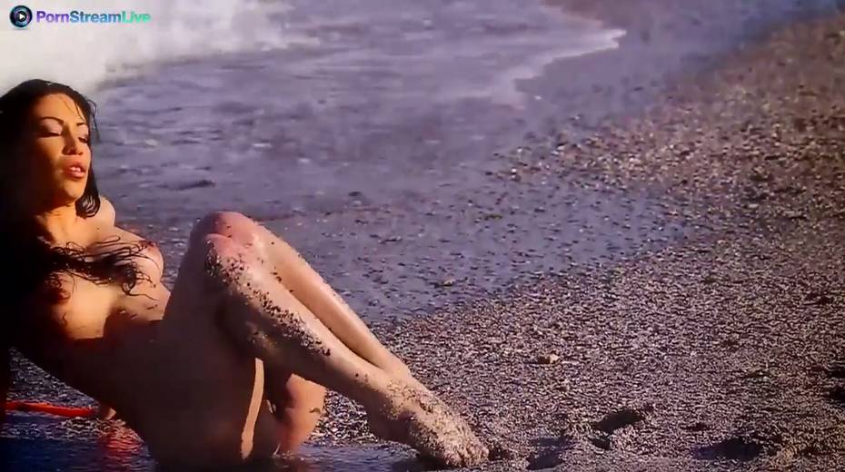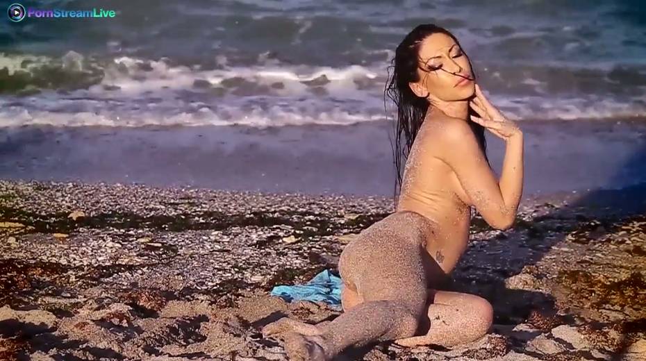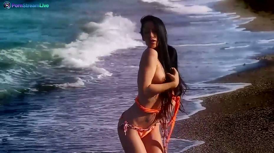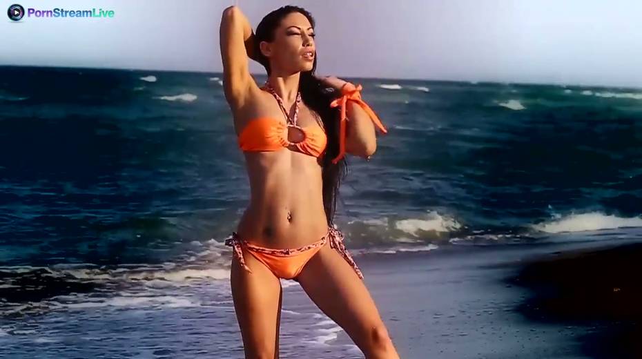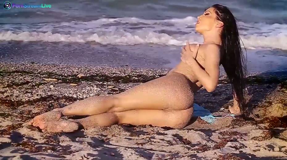 Smoking hot babe in bikini Mya Diamond gets naked and poses on the sand