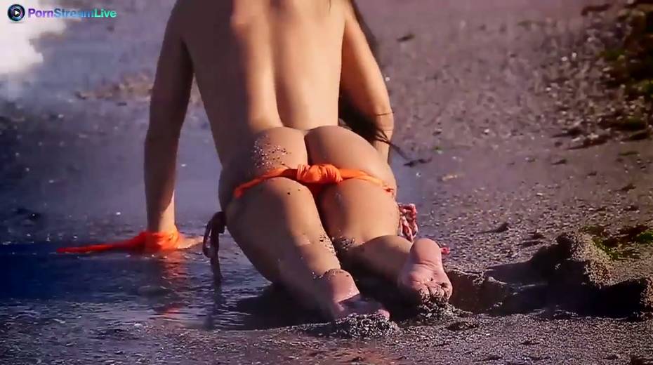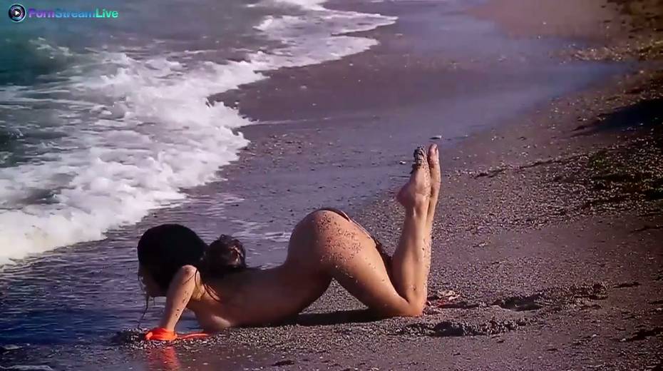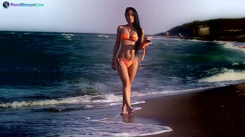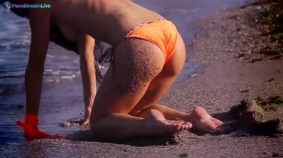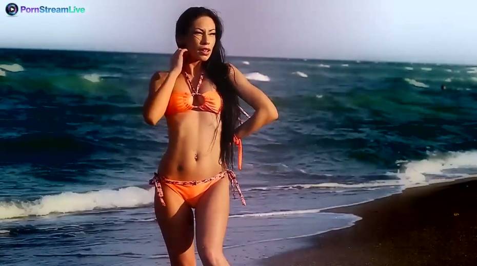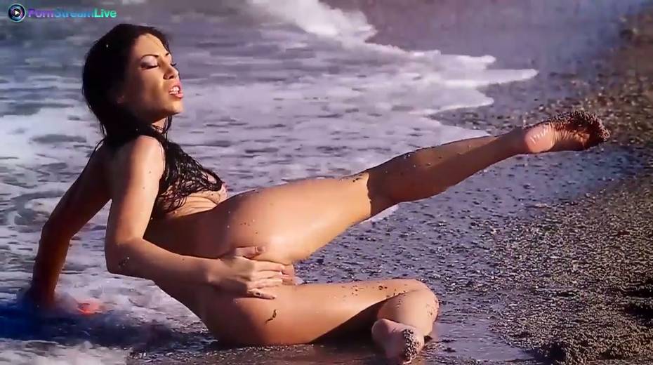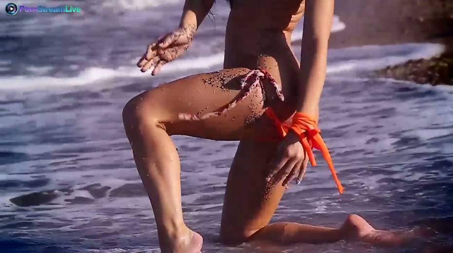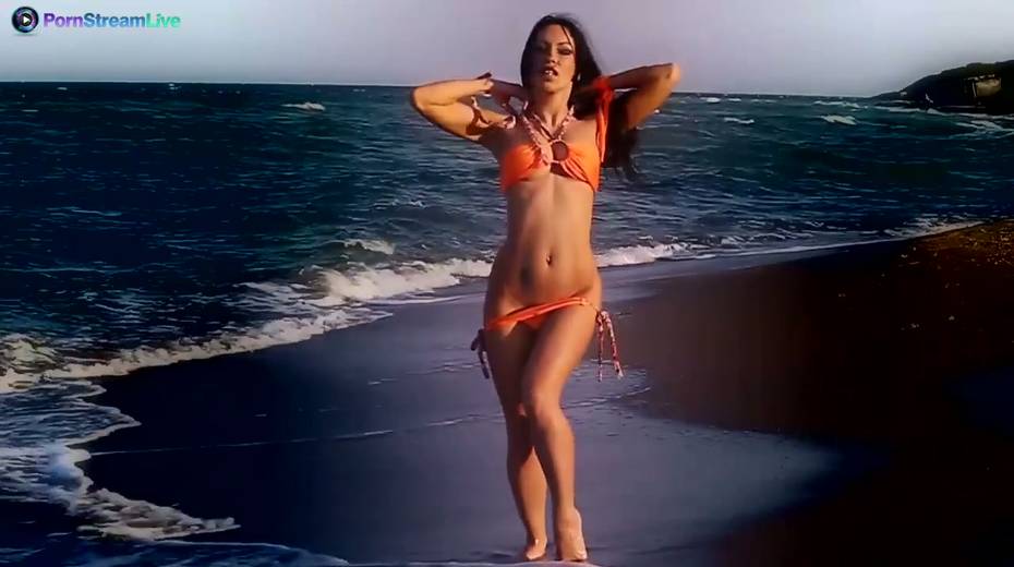 Smoking hot babe in bikini Mya Diamond gets naked and poses on the sand