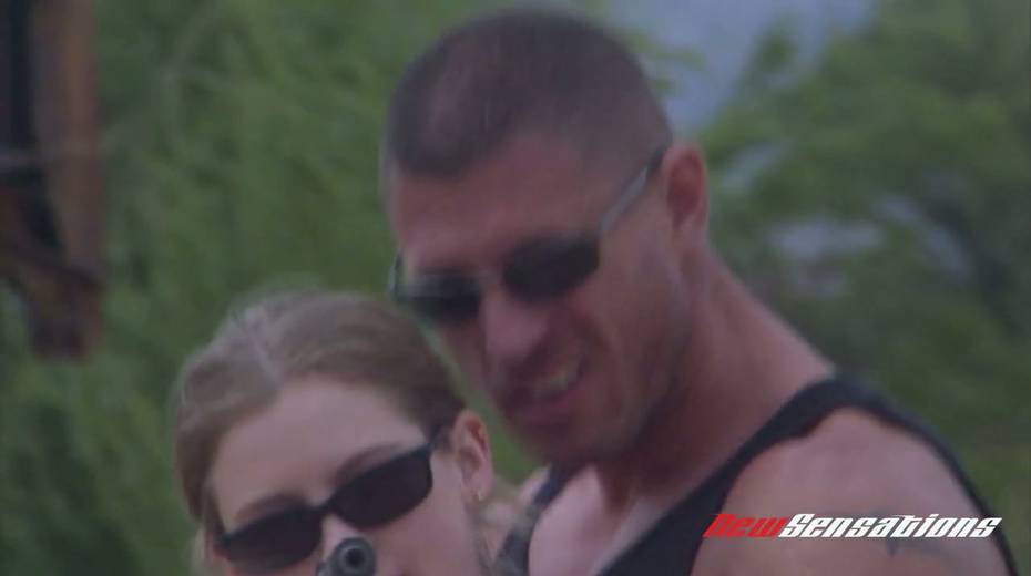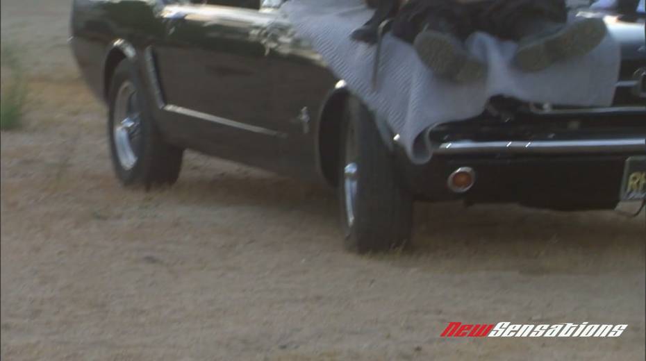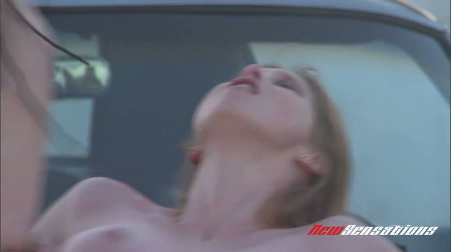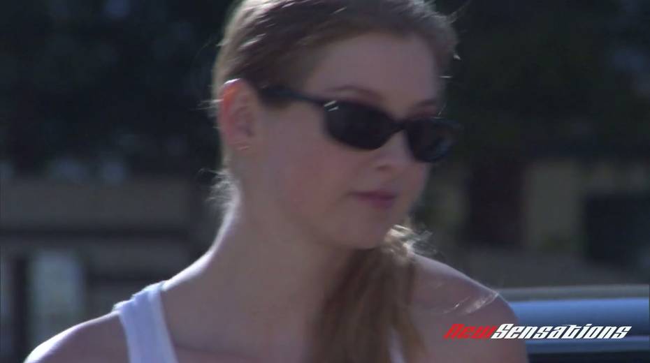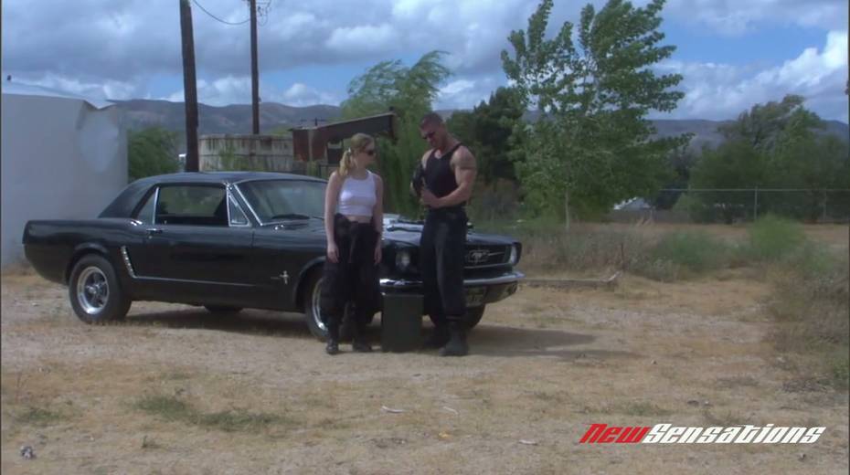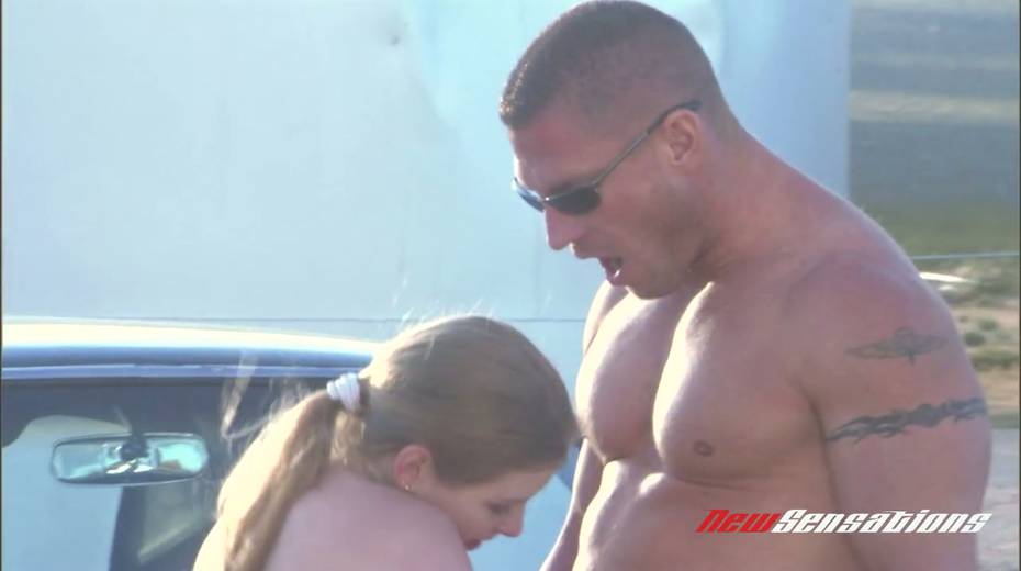 Sassy bitch Karina Kay gives a blowjob and gets fucked on car hood