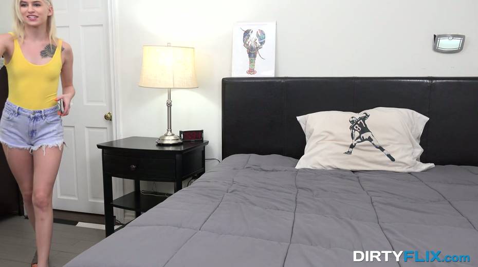 Nasty blond teen Kiara Cole goes wild on hard big dick and takes cumshots on tits