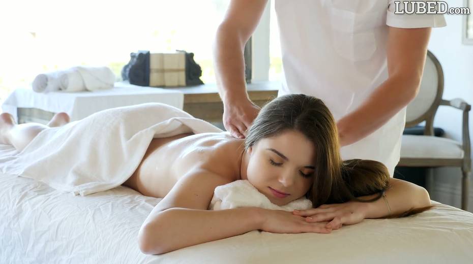 Luscious teen Megan Marx gets lubed and fucked right on the massage table