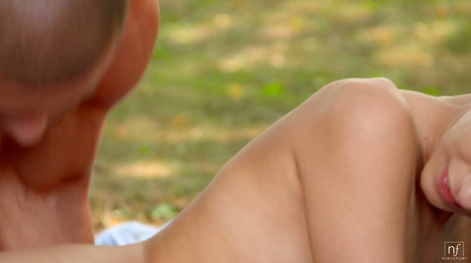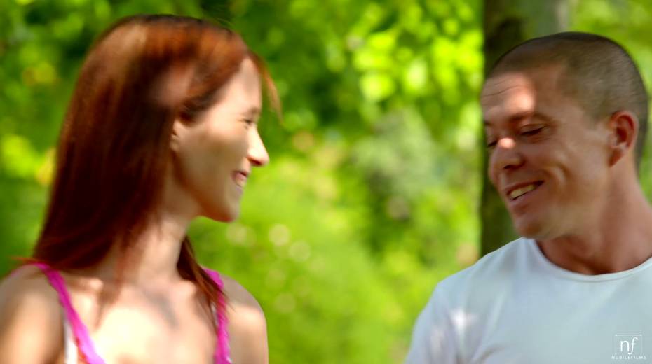 Red haired girlfriend Nikki Fox is making love in the summer park