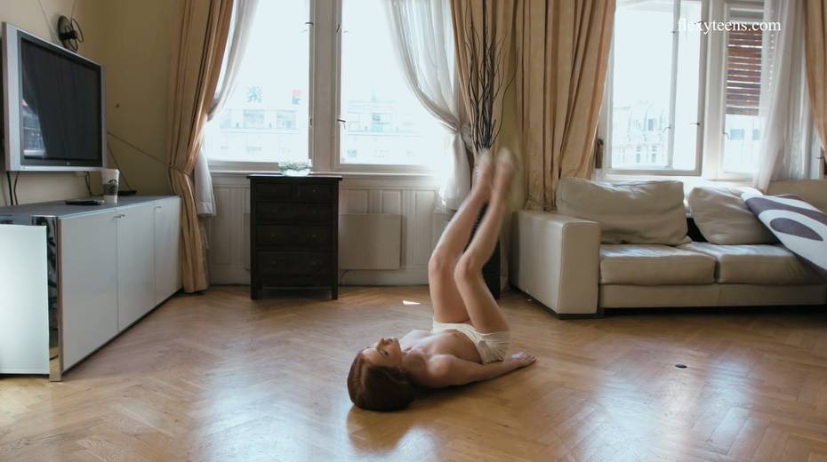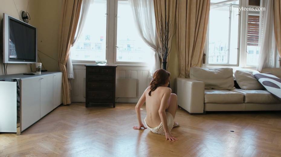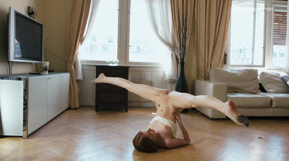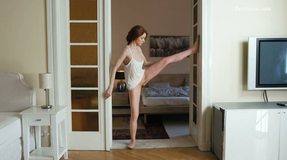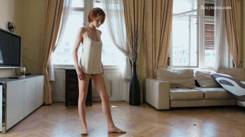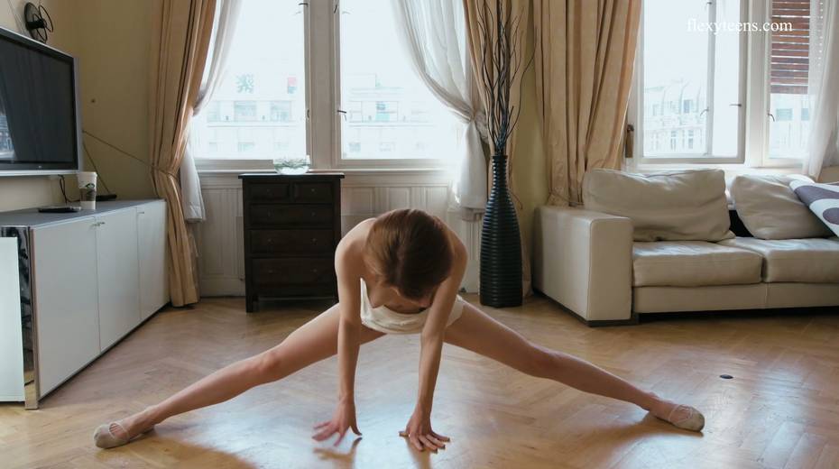 Slender ballerina Milla Lukoshkina shows off yummy muff and does the splits