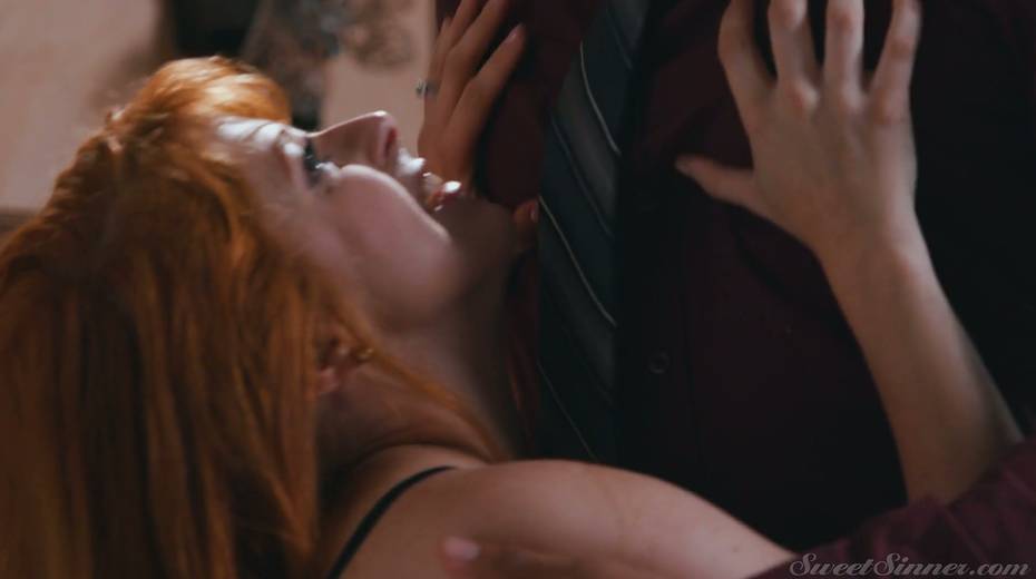 Ginger milf in sexy lingerie Penny Pax swallows big black dick and gets her muff rammed