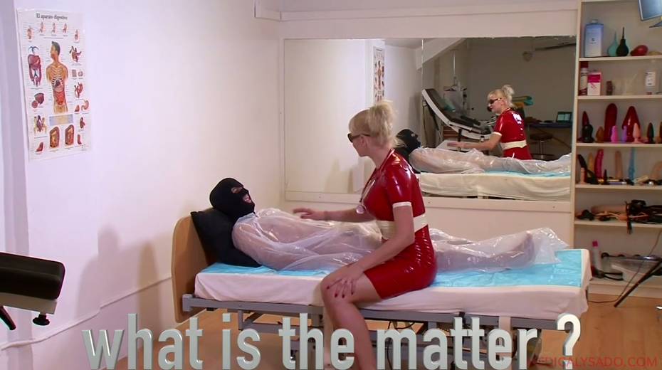 Nurse in latex Anna gives a blowjob to her patient and rides his cock