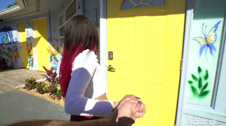 Dude with huge dick fucks Holly Hendrix's anal hole and cums on her face