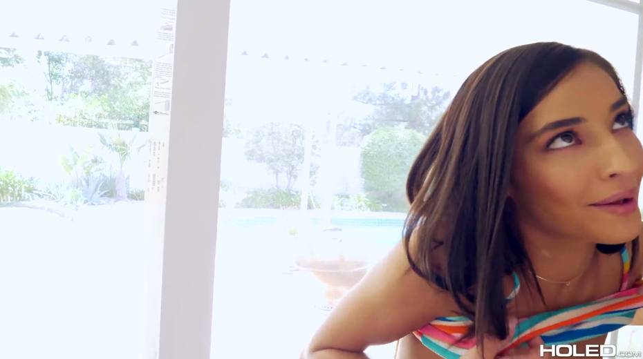 Brunet teen Emily Willis gives a blowjob and gets her pussy and anus holed