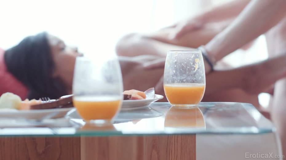 Seductive black girlfriend Nia Nacci gives a sensual blowjob and gets her pussy nailed