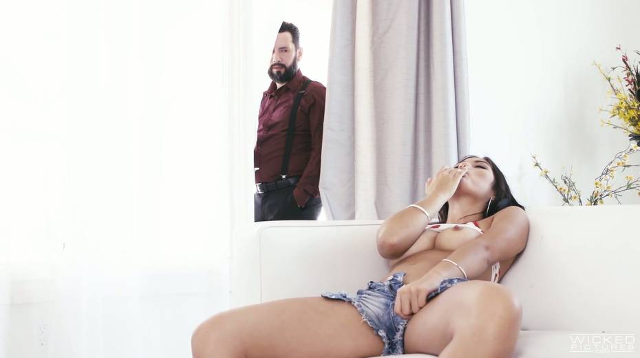 Bearded guy caught Asian babe Kendra Spade masturbating hairy pussy