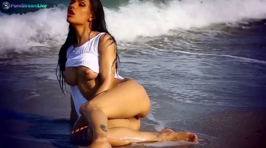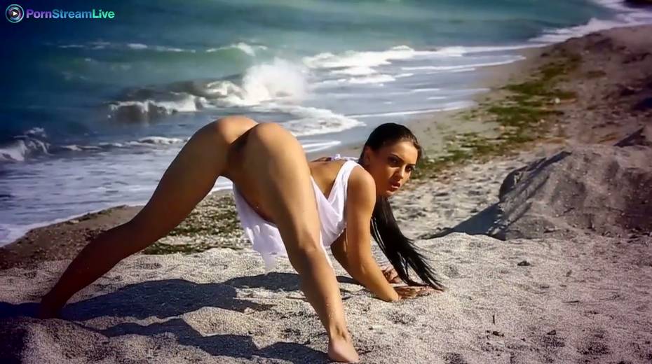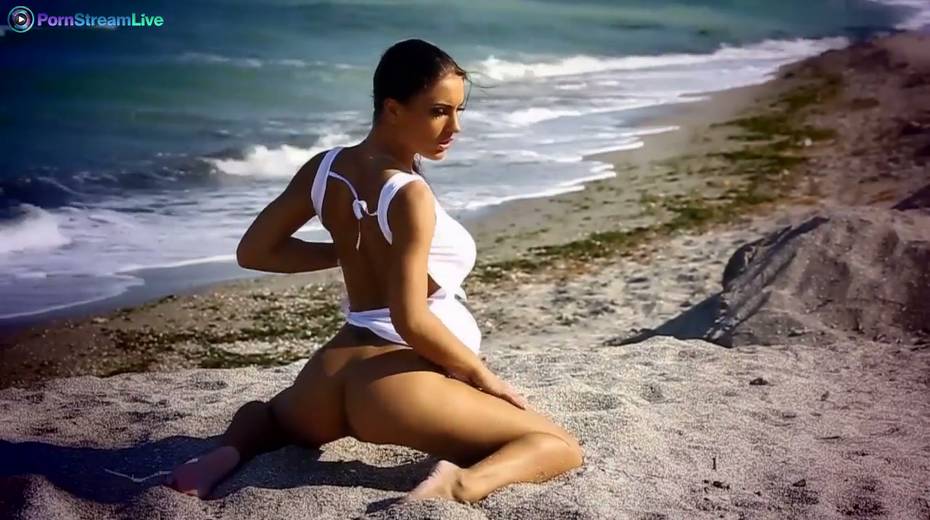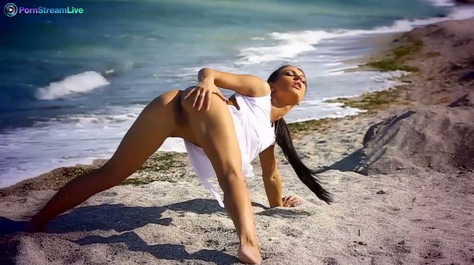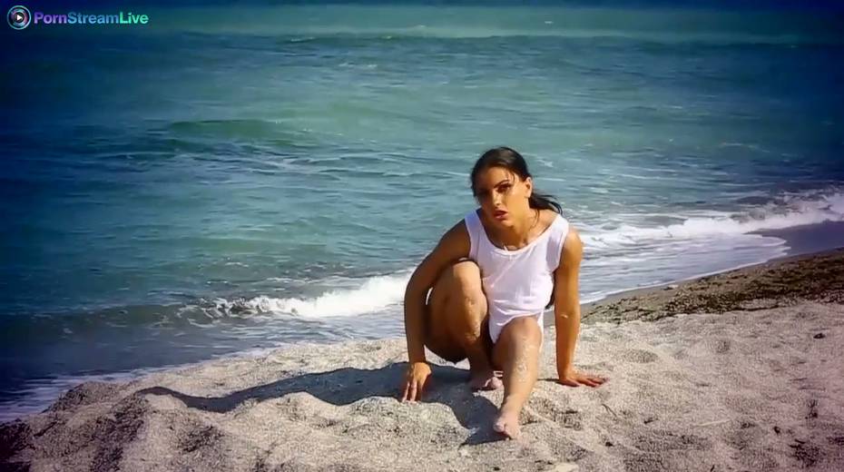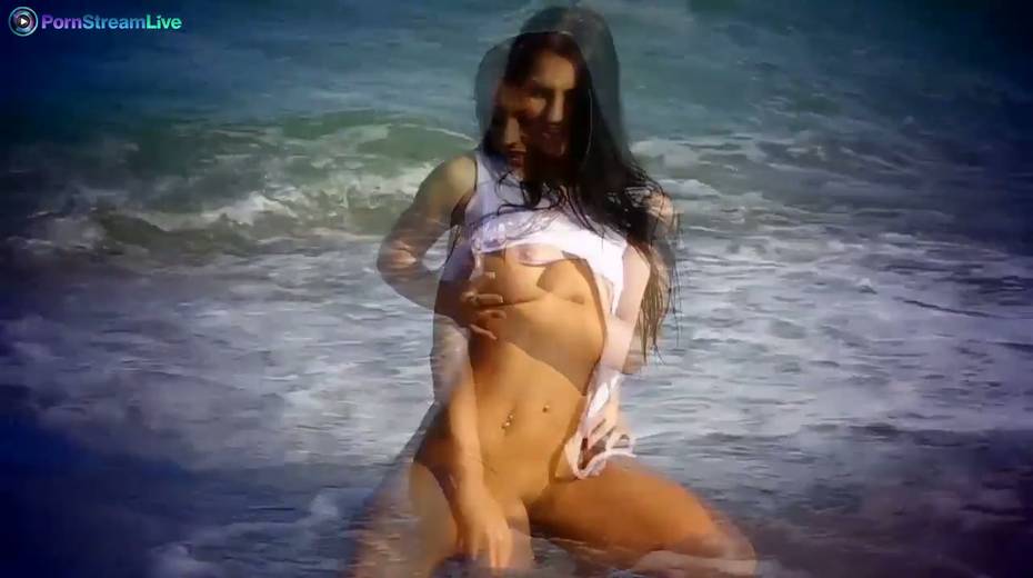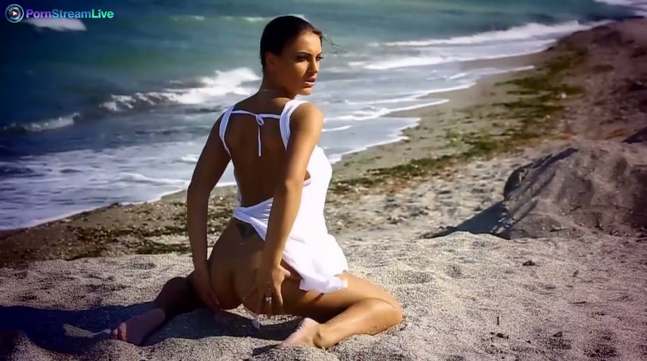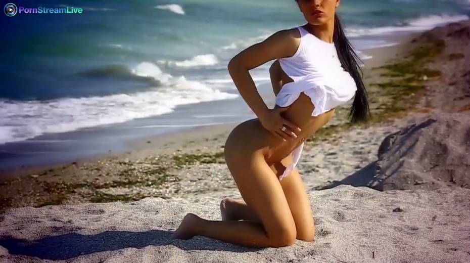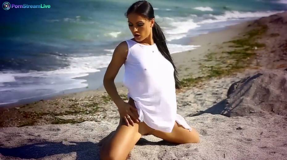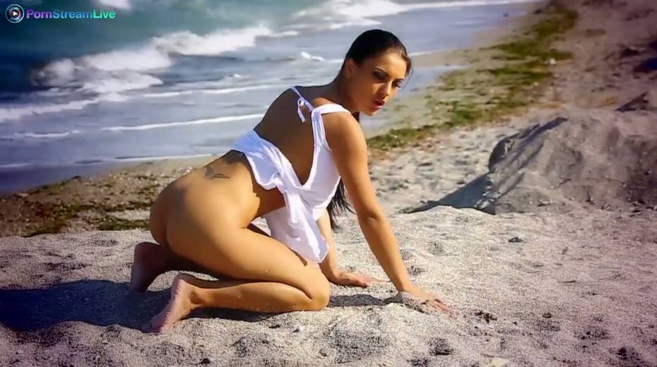 Tantalizing porn model Honey Demon shows off her pussy and boobies on the beach