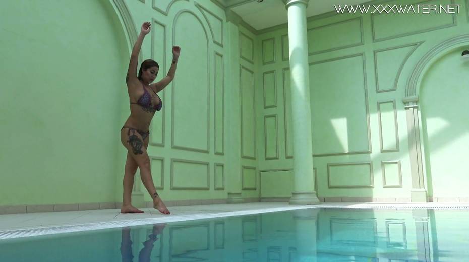 Jaw dropping underwater strip show by stunning busty babe Heidi Van Horny