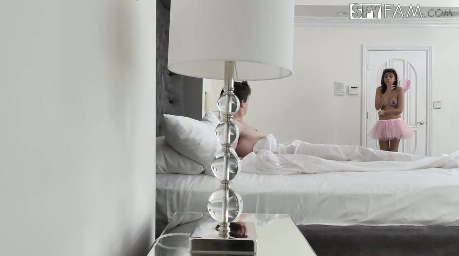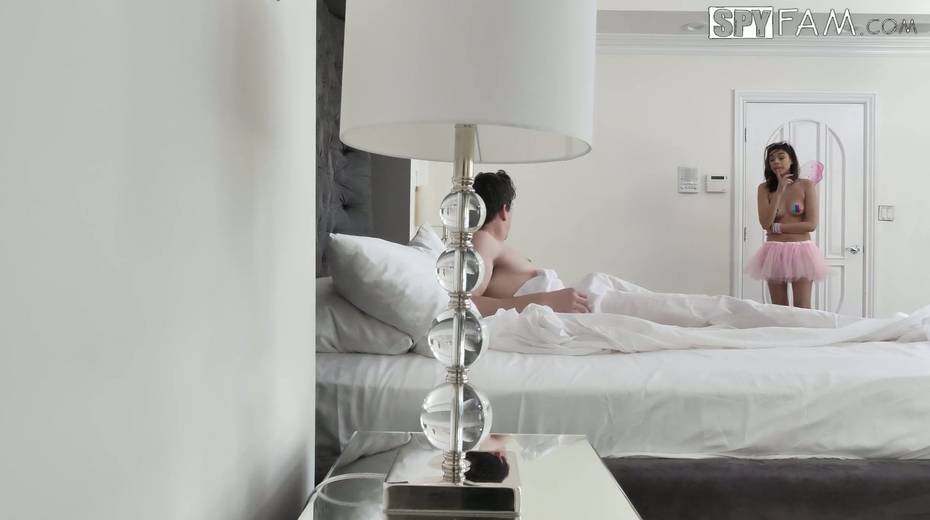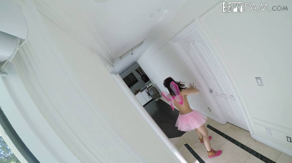Dude fucks pussy and mouth of pretty teen stepsister Harmony Wonder in front of hidden camera