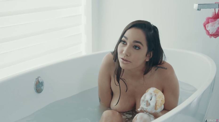 Beautiful brunette Karlee Grey is taking a bath before passionate sex