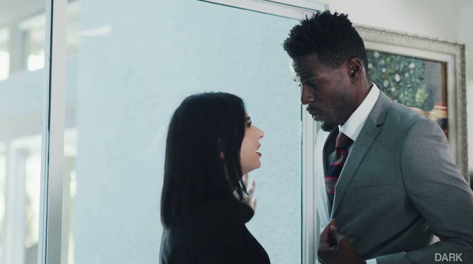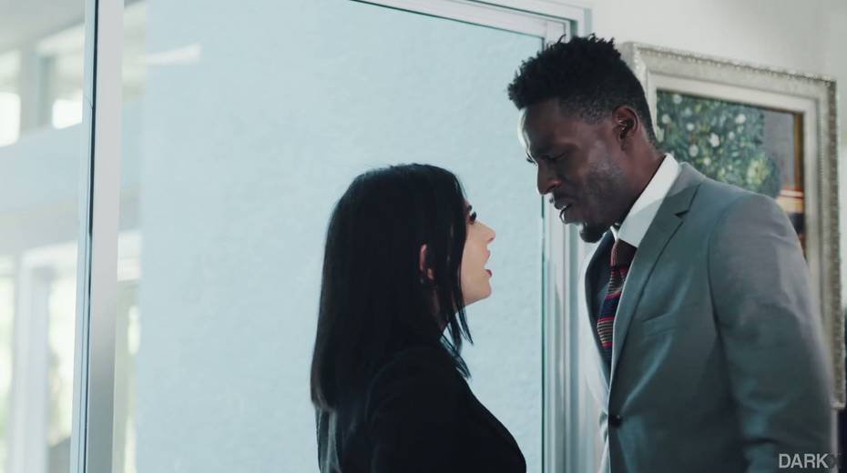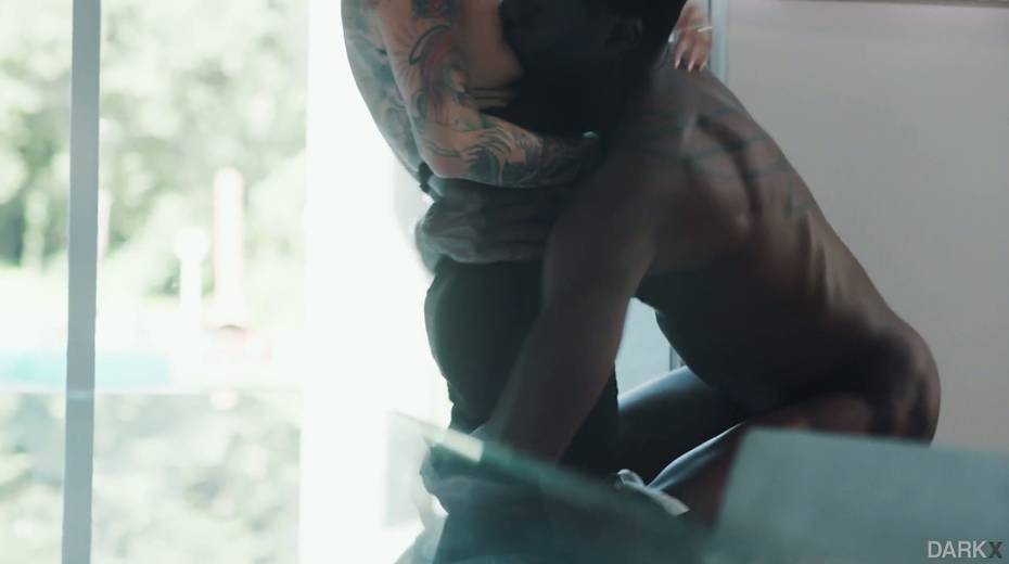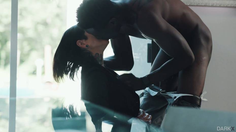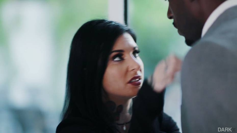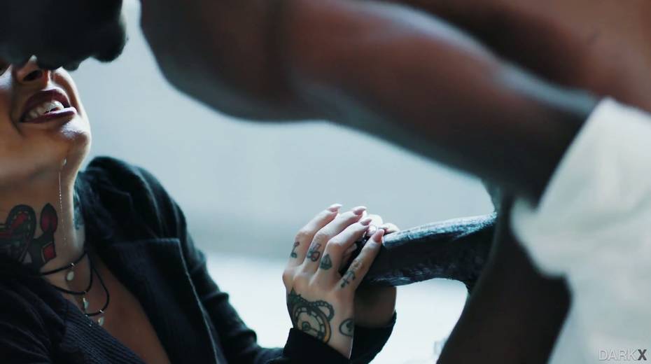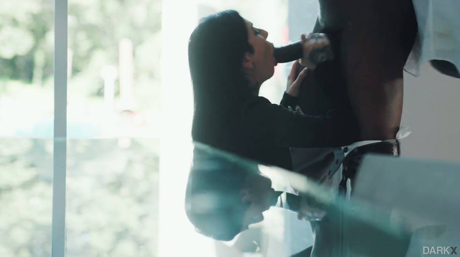 Tattooed white chick Joanna Angel swallows huge black dick before anal sex