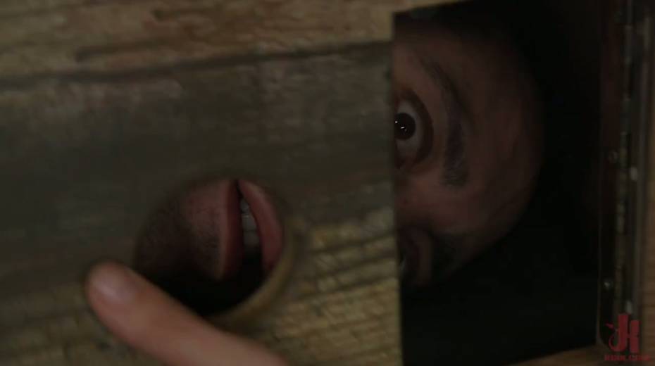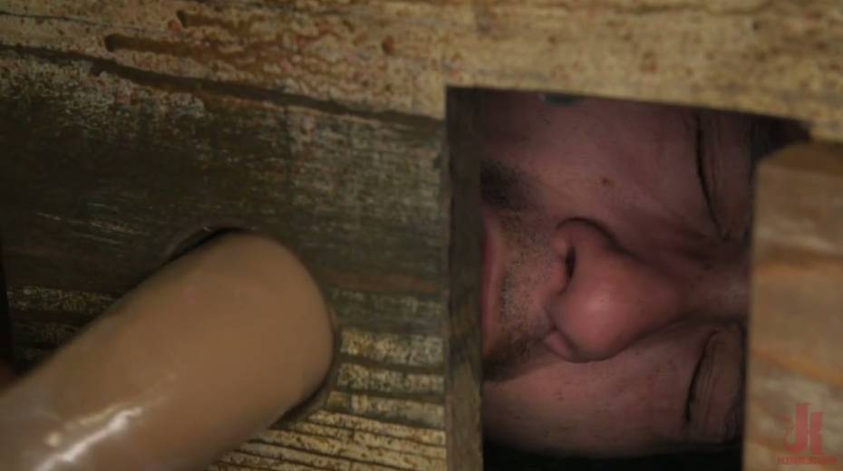 Submissive dude kisses sexy feet of horny mistress with big strapon