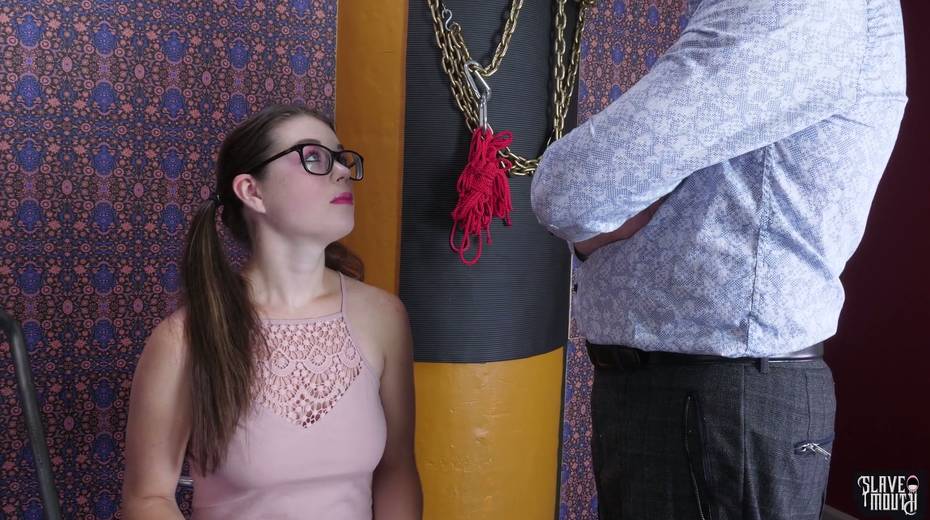 Nerdy pig-tailed brunette in glasses Anastasia Rose is licking dirty anal hole of one fat pervert
