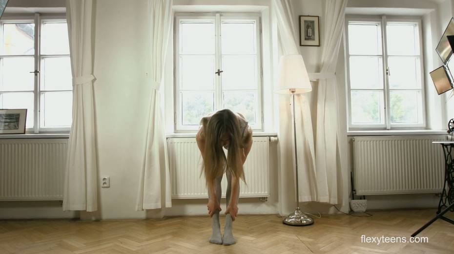Skinny gymnast Anna Netrebko does the splits and shows yummy teen pussy