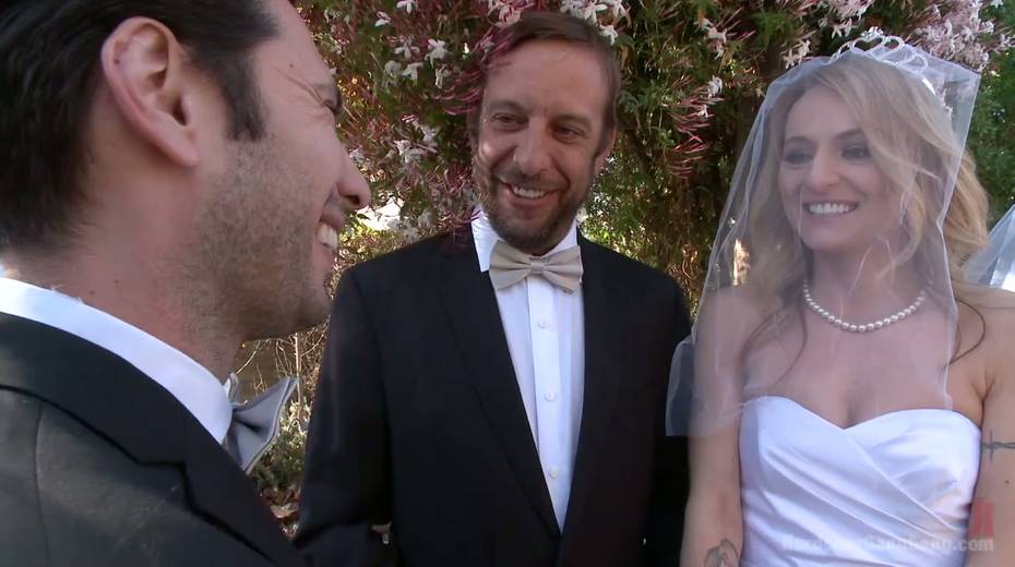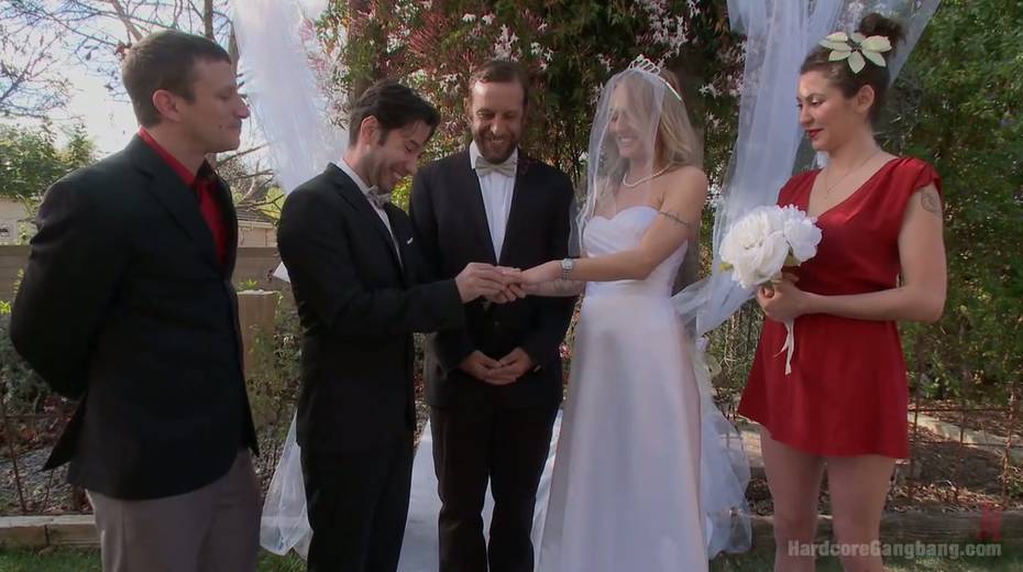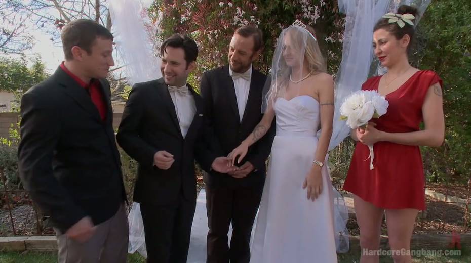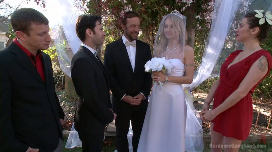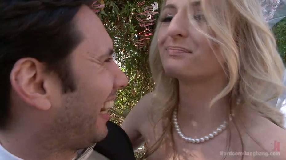 Blind folded bride Natasha Starr is fucked by groom and several dudes