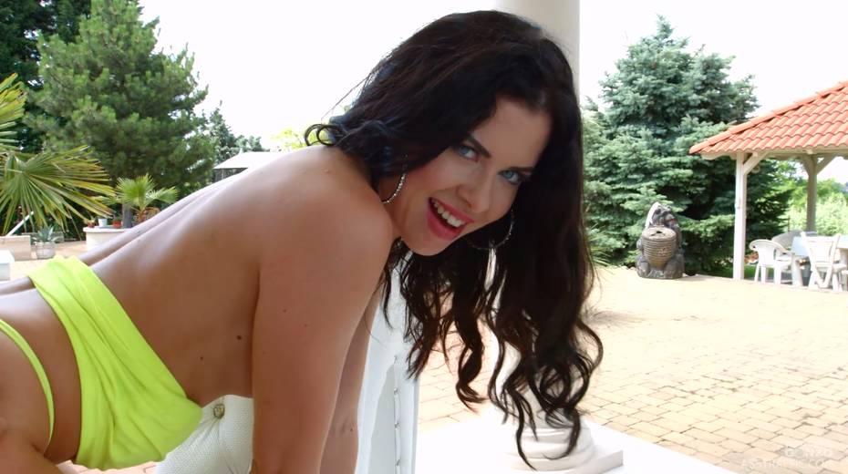 Blue eyed brunette Cassie Right gets her anus fucked and takes cum in mouth