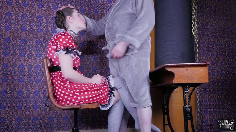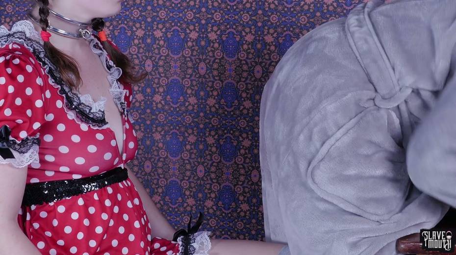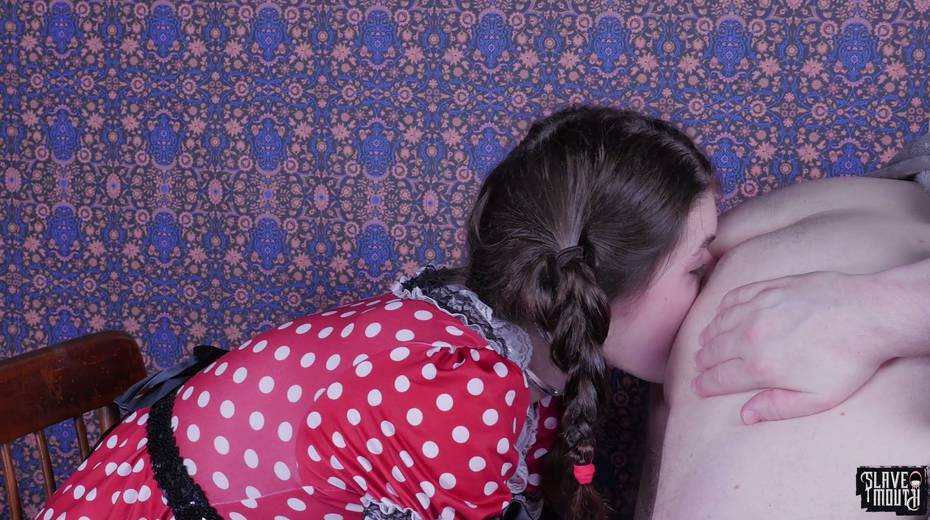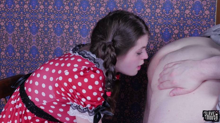 Nice teen in polka pop dress Anastasia Rose is face fucked before a rimjob