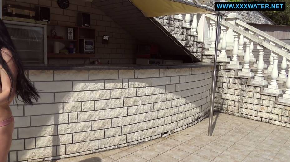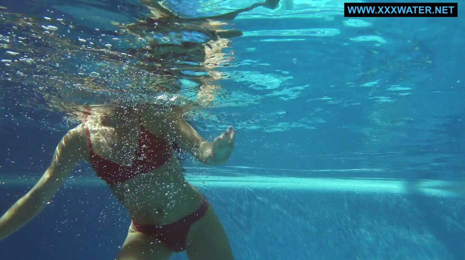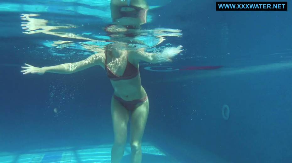 Nude swimming babe Kittina Clairette is masturbating pussy by the poolside