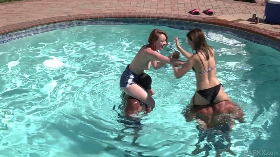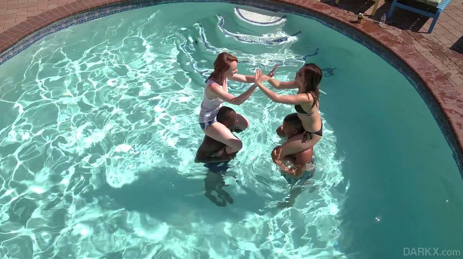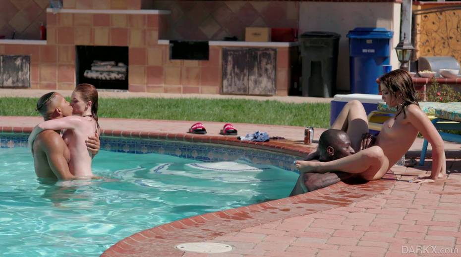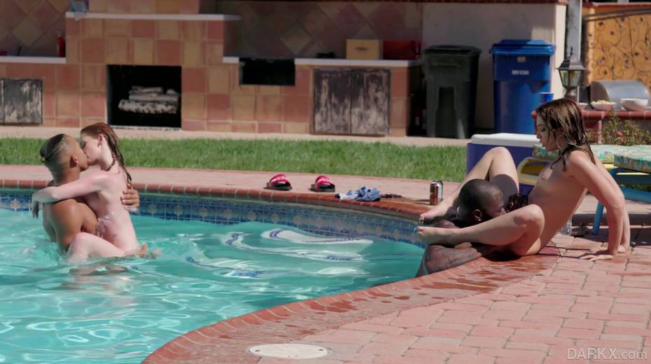 Two black fellows fuck Jane Wilde and her girlfriend by the poolside