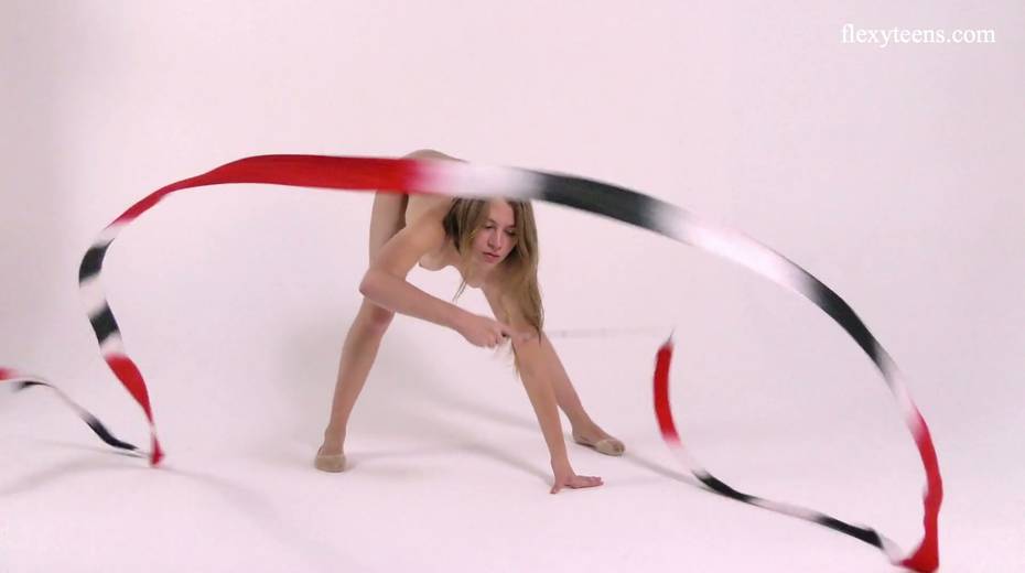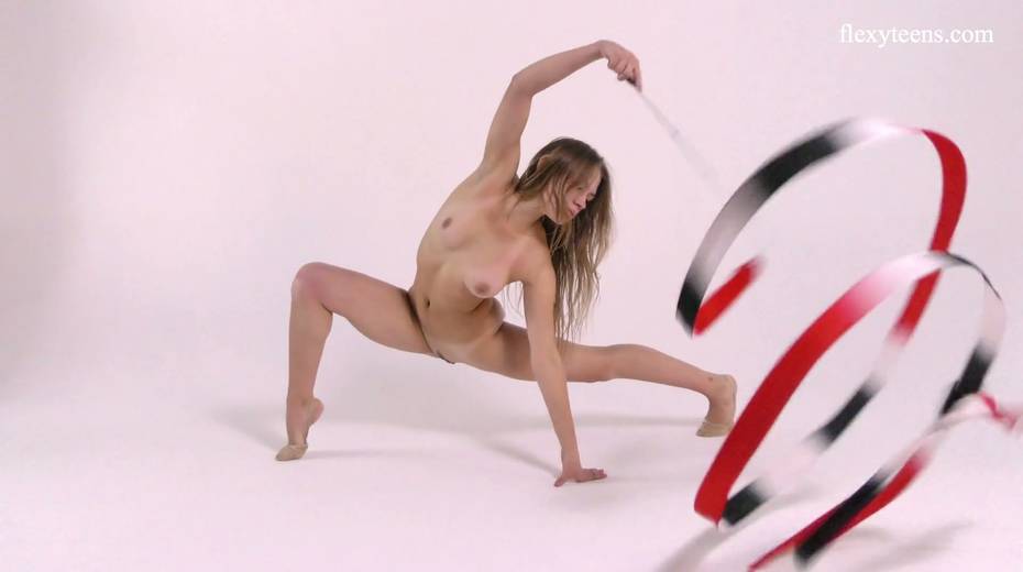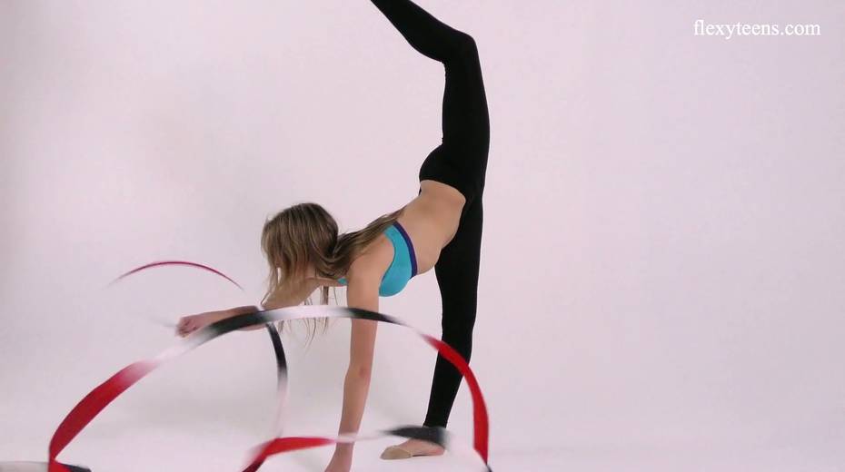 Young gymnast Kira Zukerman shoes her yummy pussy in variety of positions