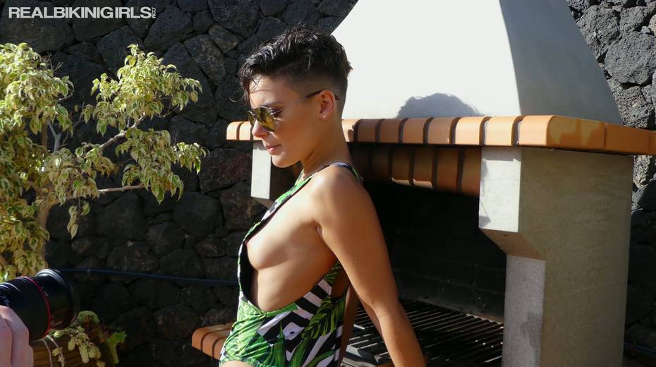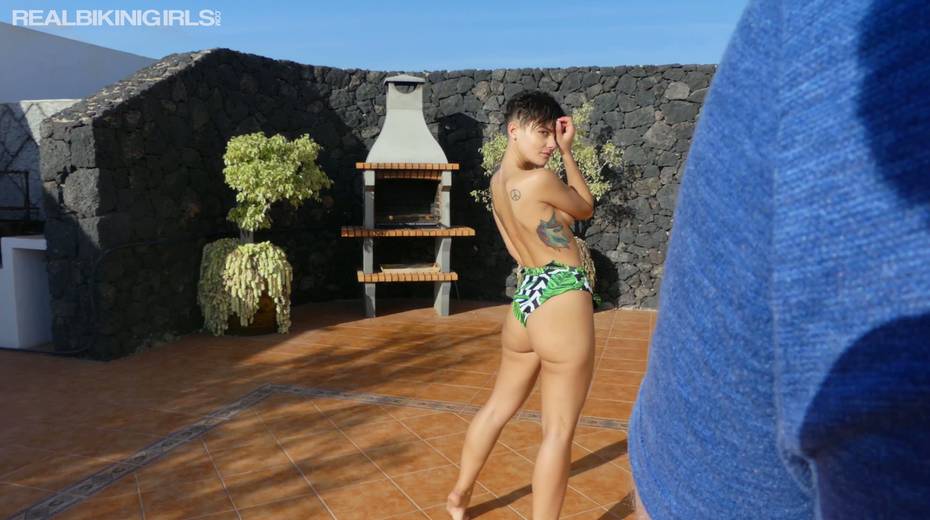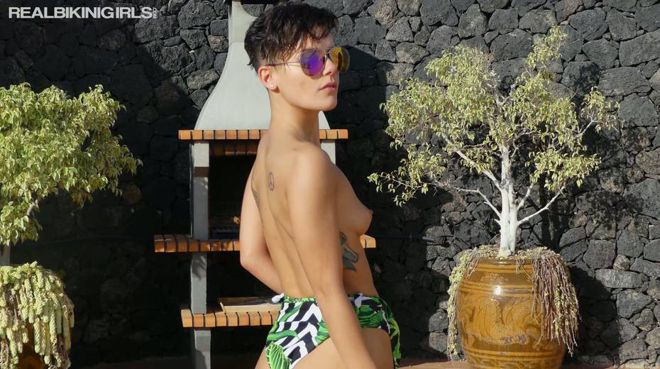 Slutty tattooed chick with tatts Terry T shows off her booty and perky small tits