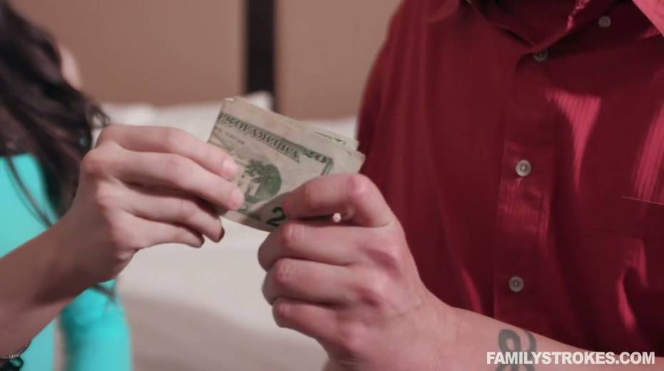 Slutty stepdaughter Judy Jolie gives a splendid blowjob for cash