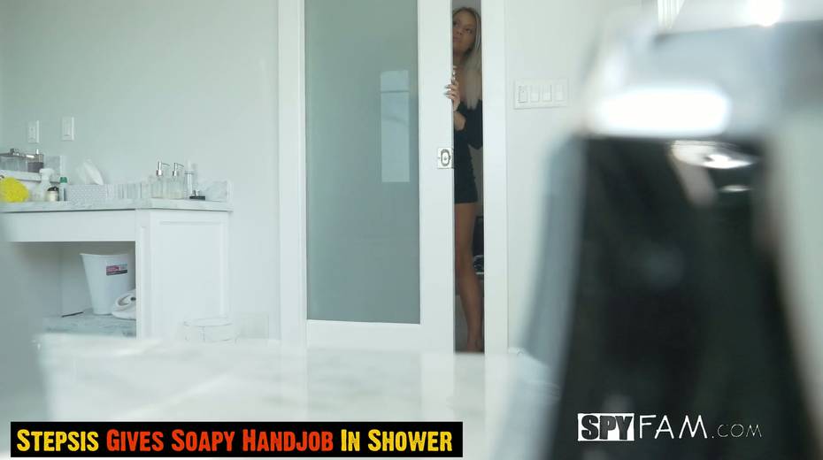 Busty stepsister Kylie Page gives a soapy titjob and handjob in the shower