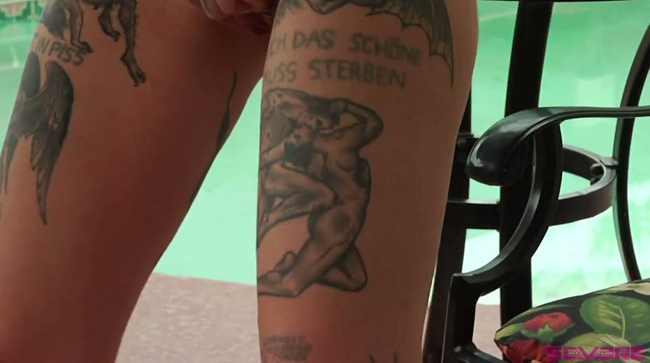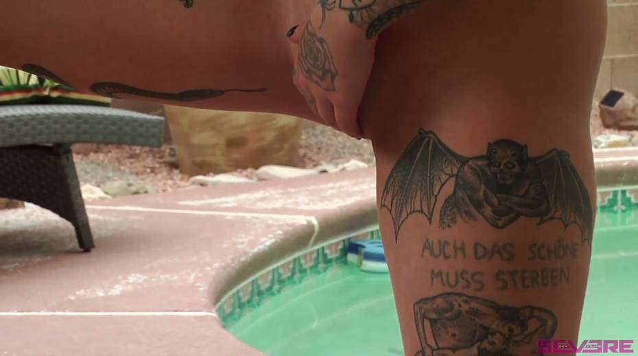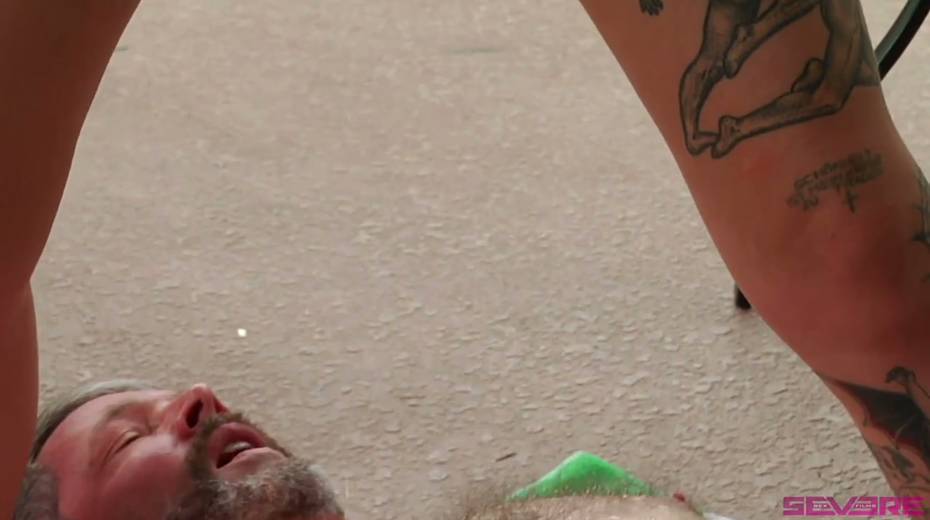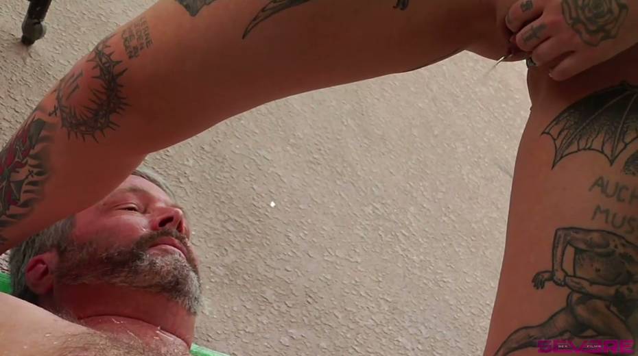 Young tattooed domina is pissing on submissive dude Jimmy Broadway
