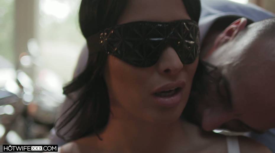 French seductress Anissa Kate gives a blind folded blowjob and gets fucked