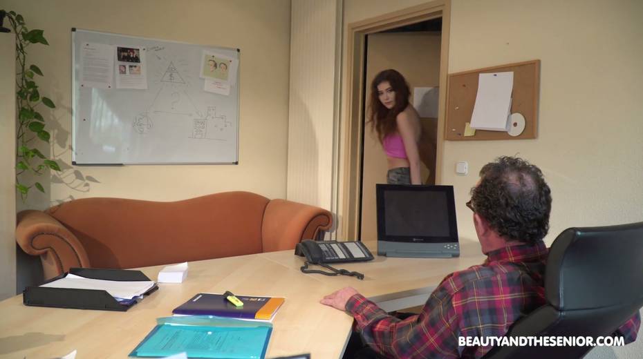 Young secretary Gisha Forza gets intimate with ugly old boss in the office