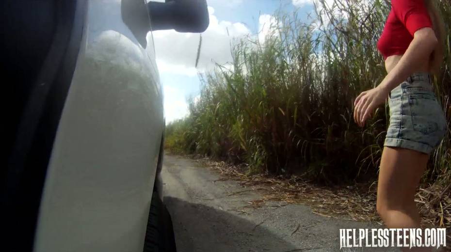 Kinky dude bangs lovely hitchhiker Callie Calypso in the van