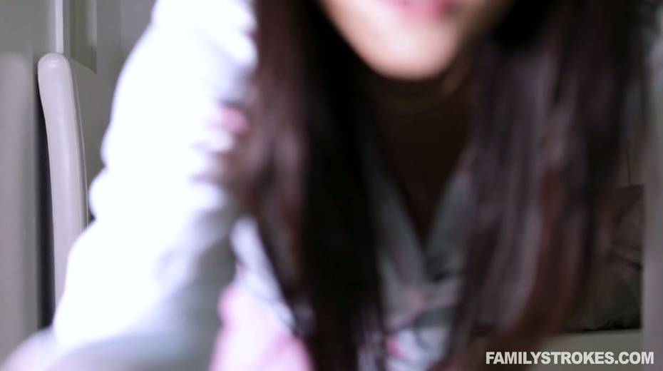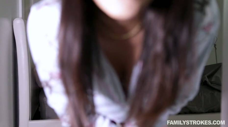 Filthy stepdaughter Serena Santos gives a blowjob to her sleeping stepdad