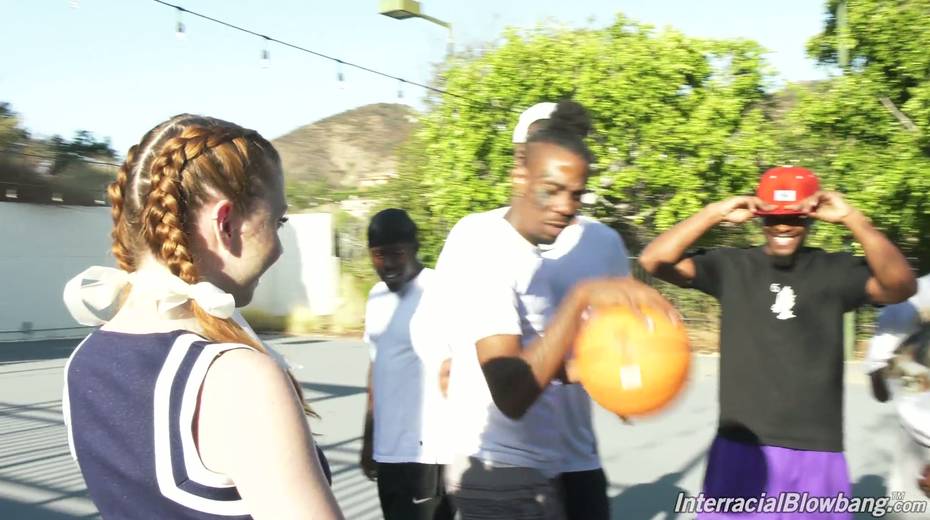 Black basketball team fucks deep throat of white cheerleader Arietta Adams