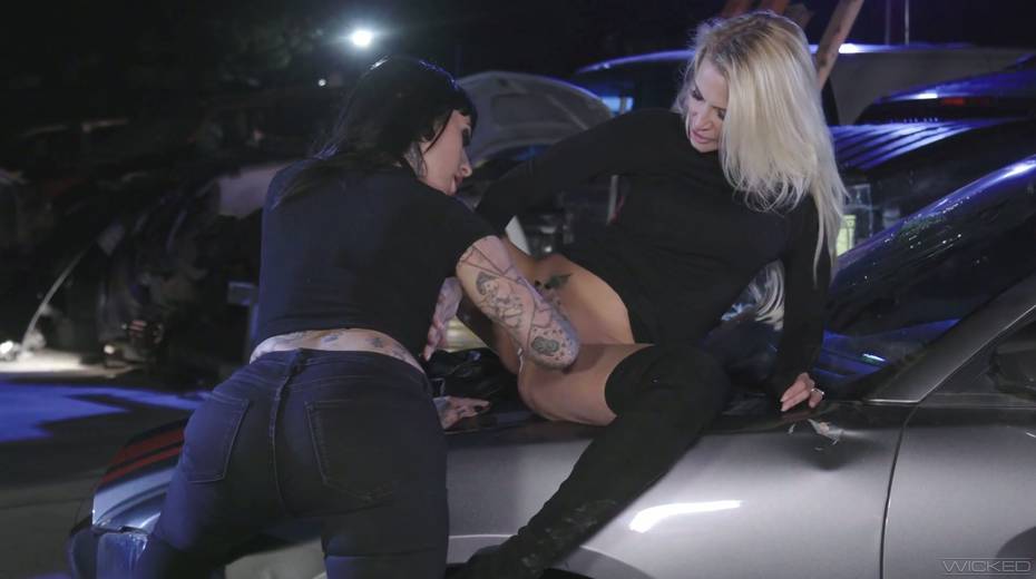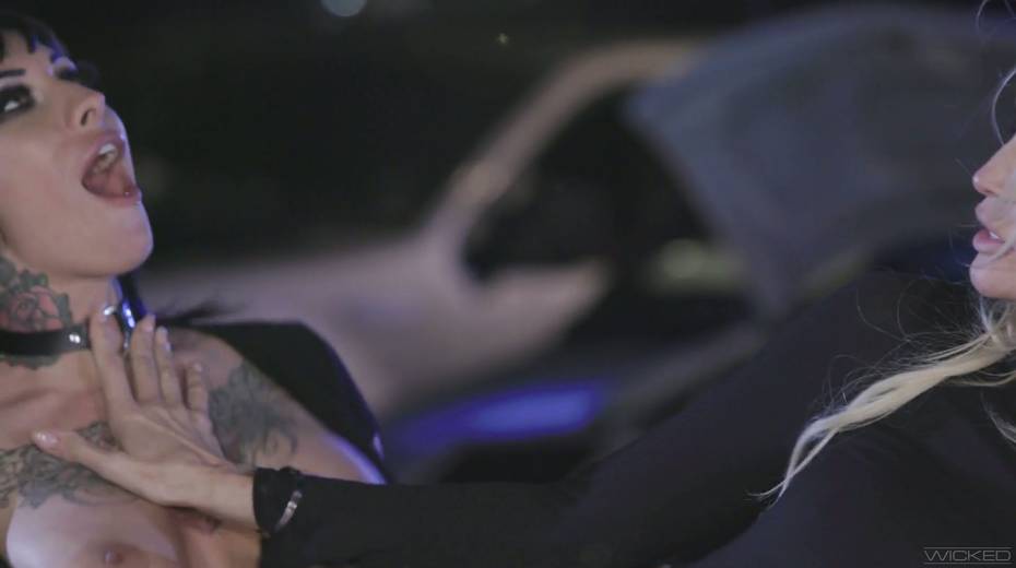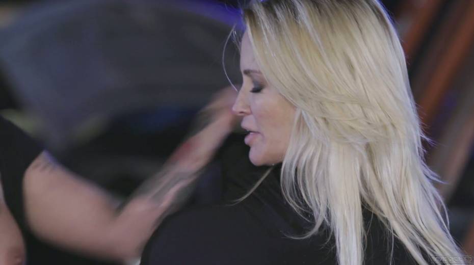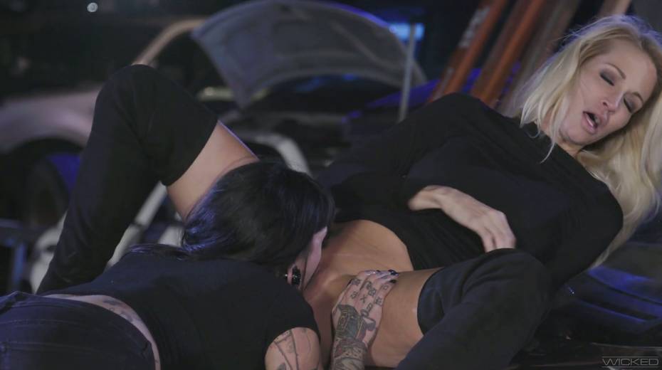 Blond lesbian gives a cunnilingus to Jessica Drake right on the hood