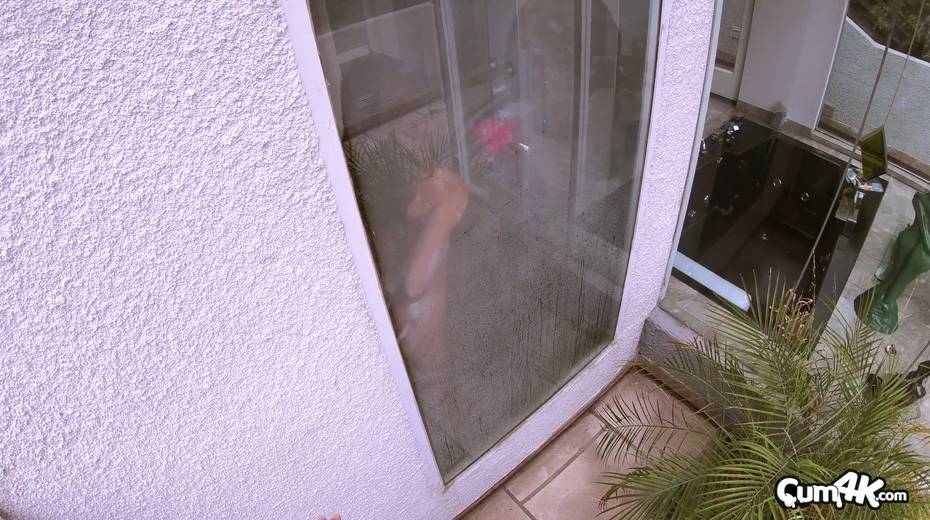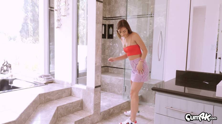 Slender babe Ana Rose gives a blowjob and gets her muff rammed in the shower