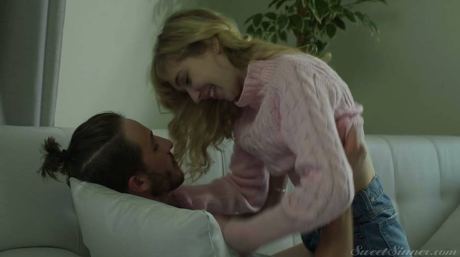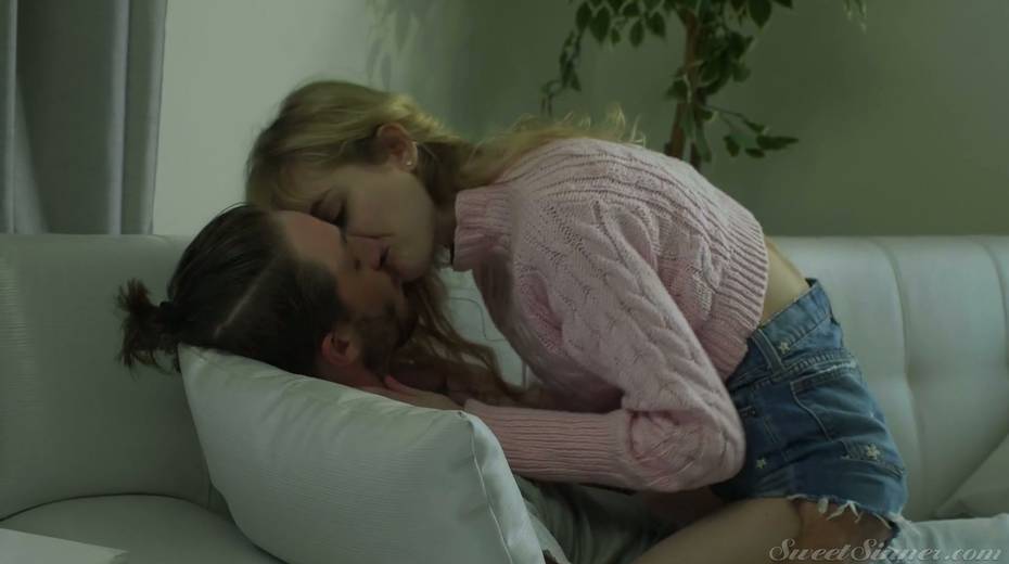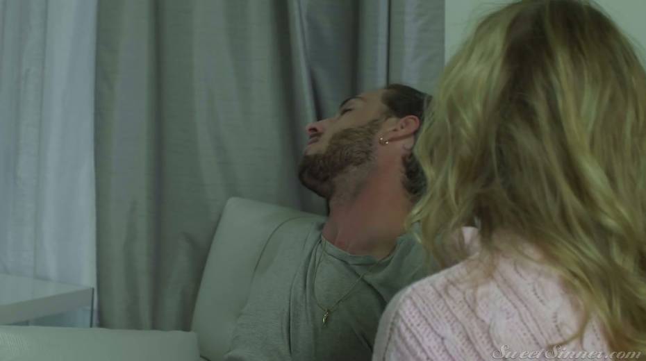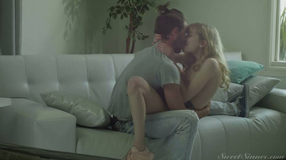 Timid blondie Mackenzie Moss is making love with her bearded boyfriend