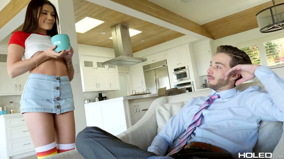 Naughty stepsister Adria Rae shows jewel anal plug to her handsome stepbrother