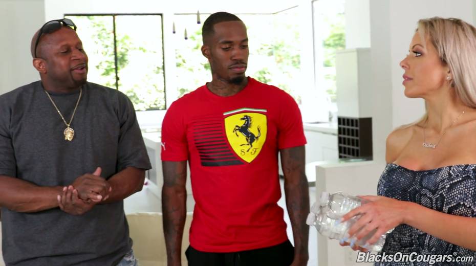 Sex-starved busty milf Nina Elle is fucked by several big black fellows