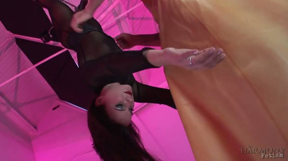 Dude fucks hanging upside down bitch Claudia Rossi and cums in her mouth