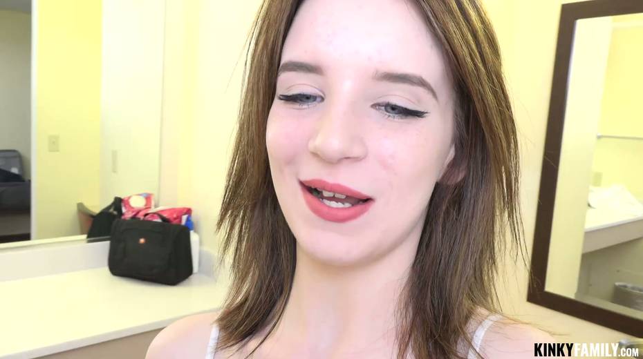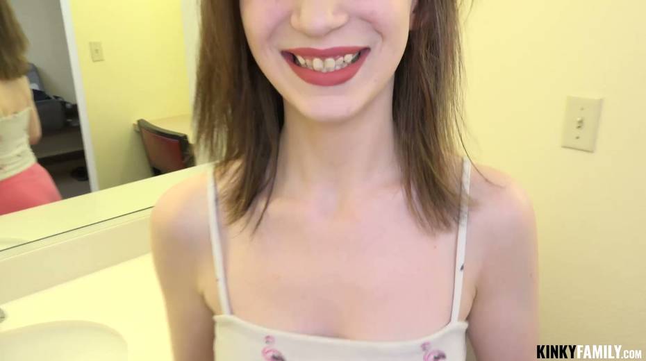 Slutty teen Lily Moon gives a great blowjob and gets a mouthful of cum