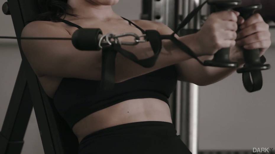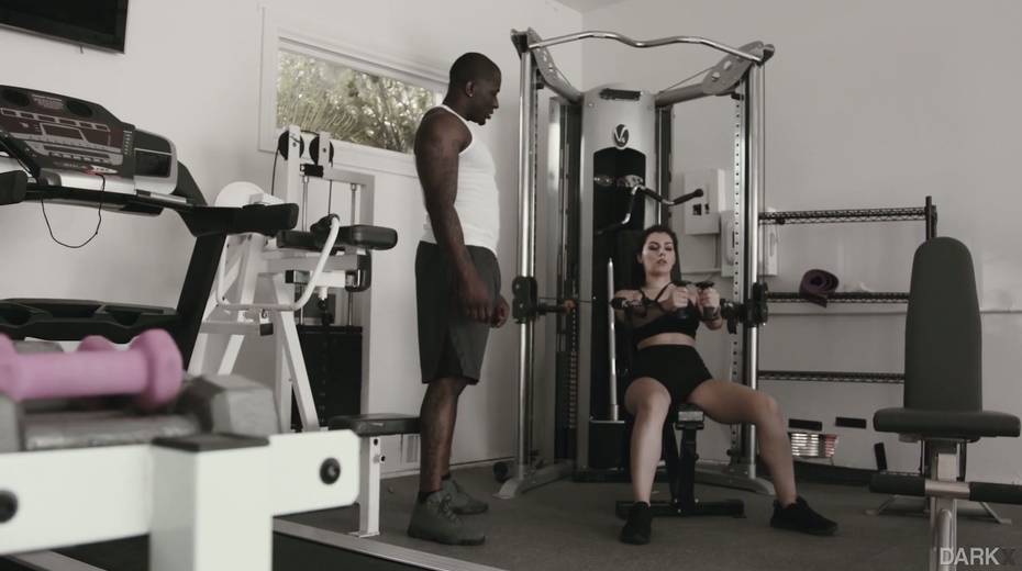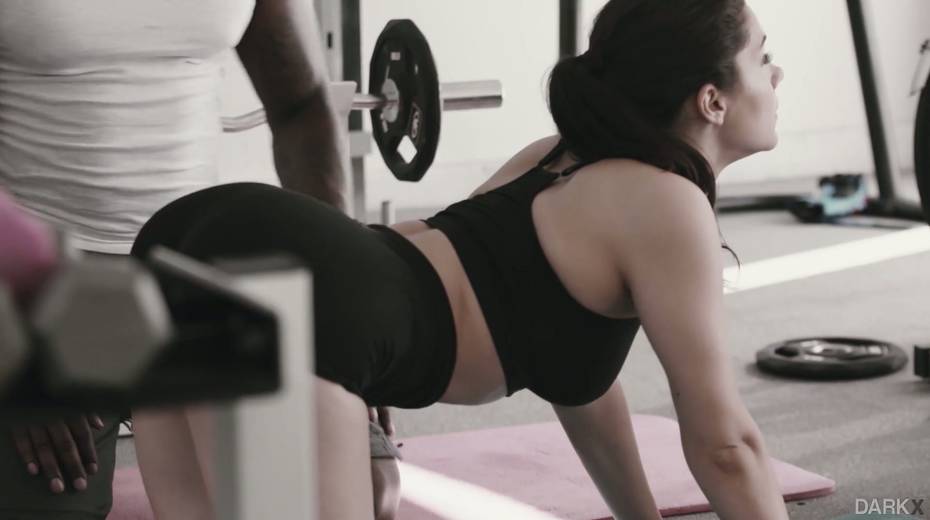 Fitness chick with yummy big boobies Valentina Nappi goes black at the gym