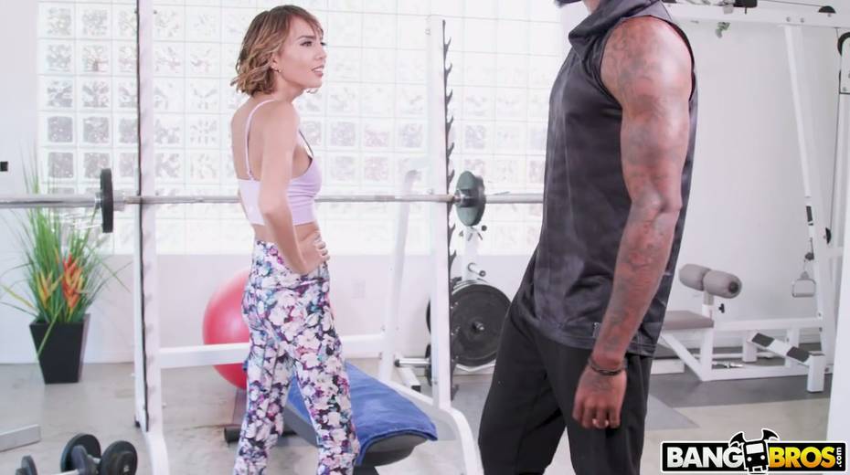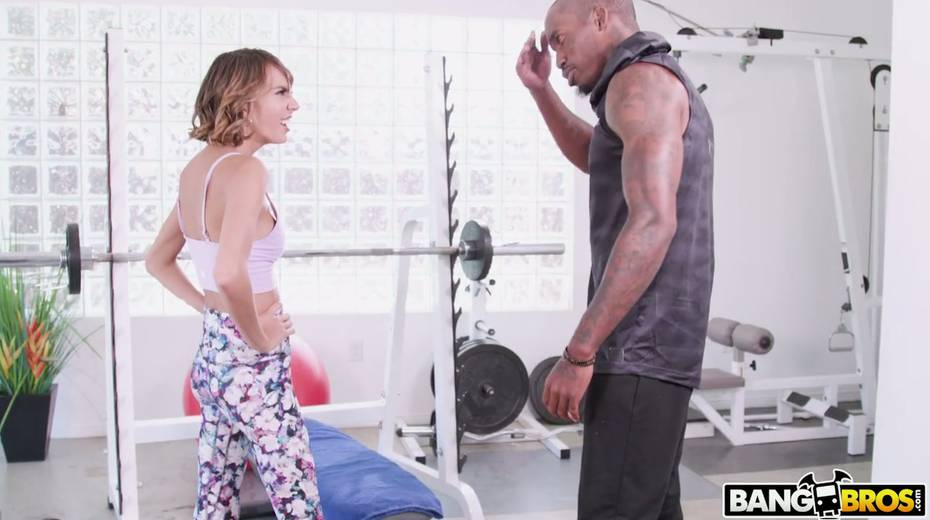 Strong black dude fucks deep throat and wet tight cunt of Janice Griffith at the gym