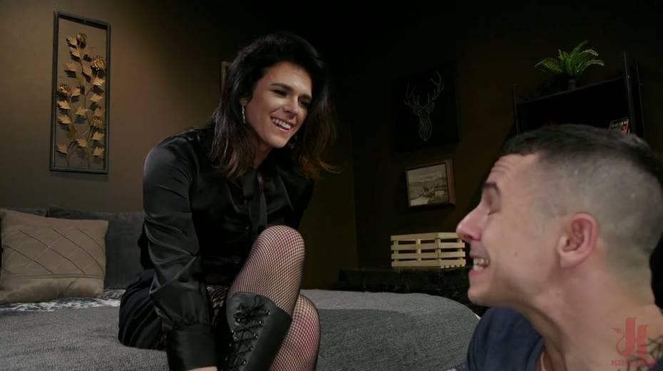 Busty tranny Kendall Penny fucks mouth and anus of bisexual boyfriend