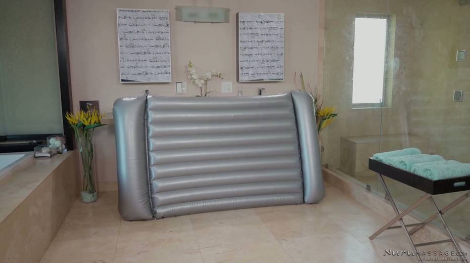 Gorgeous babe Liv Revamped gives a blowjob and nuru massage to her new client