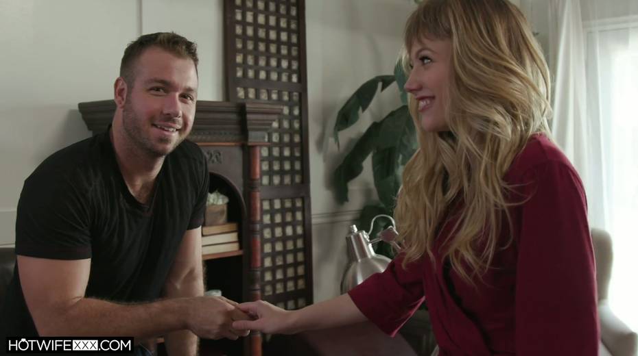 Blondie with tied up hands Ivy Wolfe gets facial after a rough couple sex